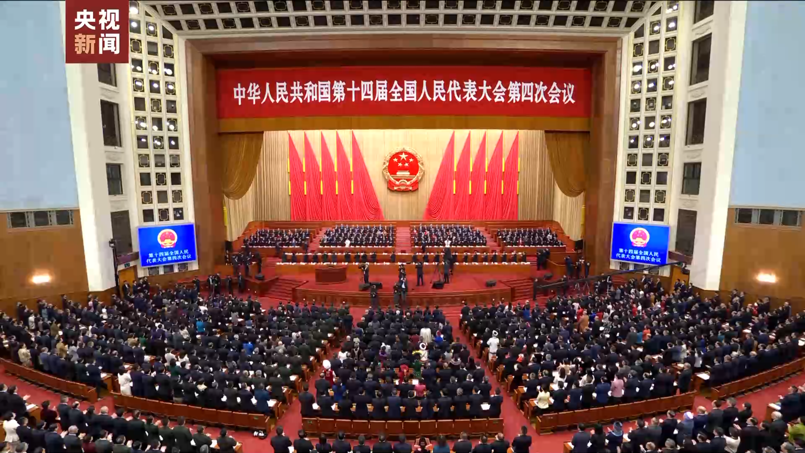 شی جن پھنگ اور پارٹی اور ریاست کے دیگر رہنماؤں کی چودہویں قومی عوامی کانگریس کے چوتھے اجلاس کے دوسرے کل رکنی اجلاس میں شرکت